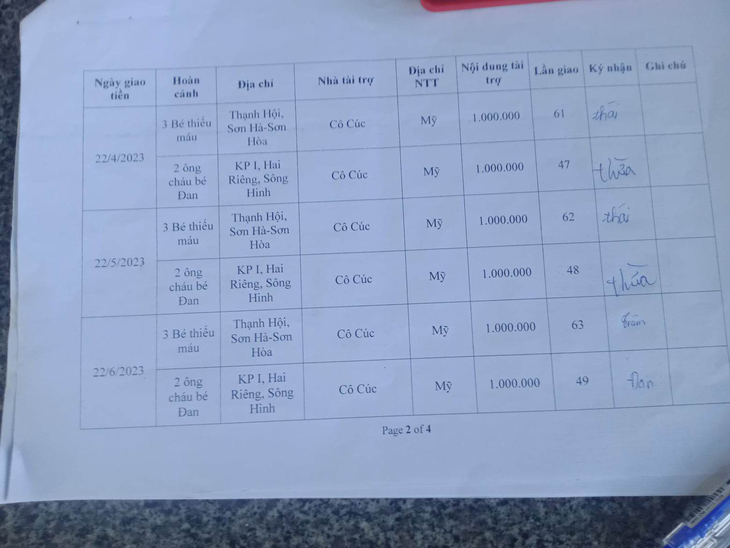 - VND 1 million for 03 children with congenital anemia.