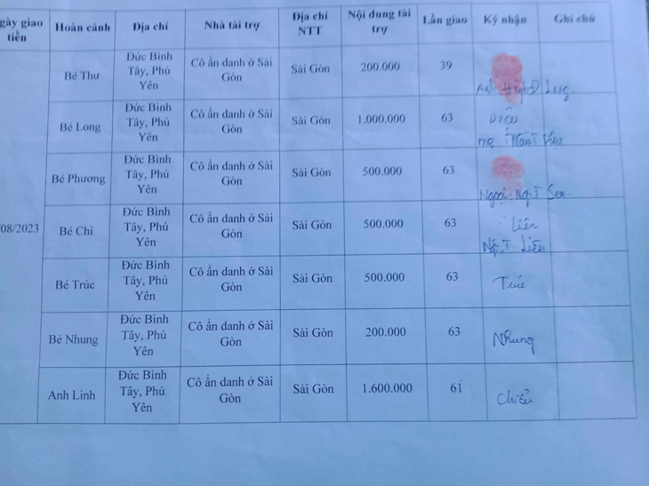 6. Sponsors: Anonymous Sponsor from Sai Gon: VND 5.5 million for 06 students, Mrs. Thom and Mr. Linh.
