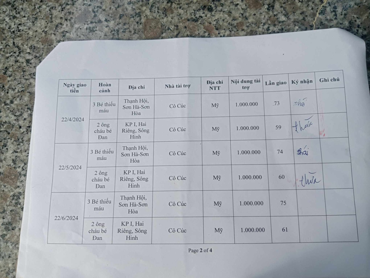 - 03 children with congenital anemia. Their father died in a traffic accident. Their mother works as a hired laborer to take care of them. They have to go for a blood change once a month.