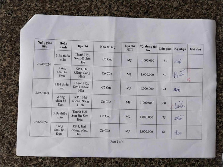 - 03 children with congenital anemia. Their father died in a traffic accident. Their mother works as a hired laborer to take care of them. They have to go for a blood change once a month.