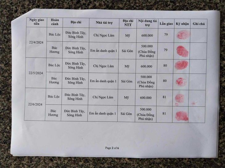 - Anonymous sister from Sai Gon: VND 500,000 for Mrs. Huong.