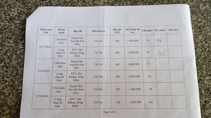 - VND 1 million for 03 children with congenital anemia.