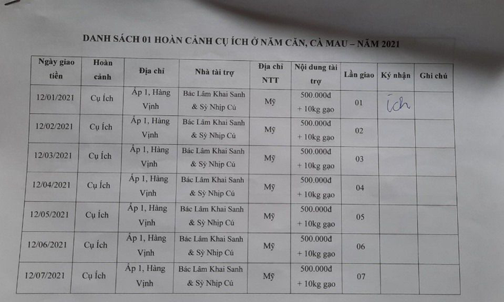 6. Sponsor: Mr. Lam Khai Sanh & Sy Nhip Cu: VND 500,000 + 10 kg of rice.