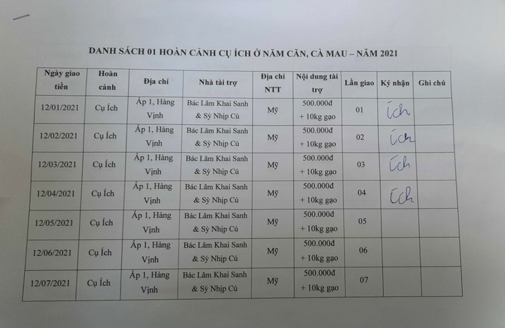 6. Sponsor: Mr. Lam Khai Sanh & Sy Nhip Cu: VND 500,000 + 10 kg of rice.
