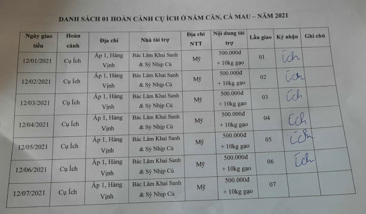 6. Sponsor: Mr. Lam Khai Sanh & Sy Nhip Cu: VND 500,000 + 10 kg of rice.
