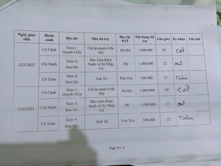 - Mr. Tu from Phu Yen: VND 500,000 for Mrs. Toan family.