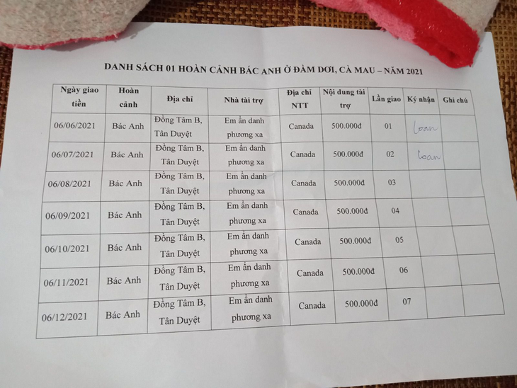 2. Local Volunteer: Ms. Tu, Tan Hung village, Ngoc Chanh commune, Dam Doi district, Ca Mau province, Viet Nam.