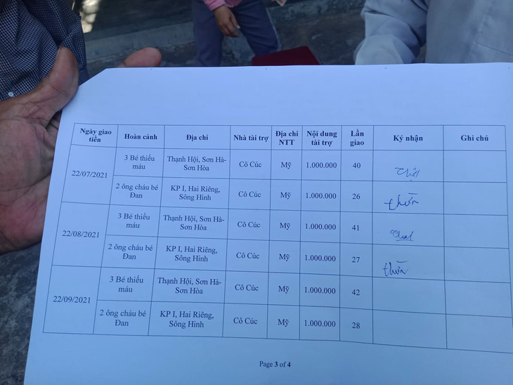 - 03 children with congenital anemia. Their father died in a traffic accident. Their mother works as a hired laborer to take care of them. They have to go for a blood change once a month.
