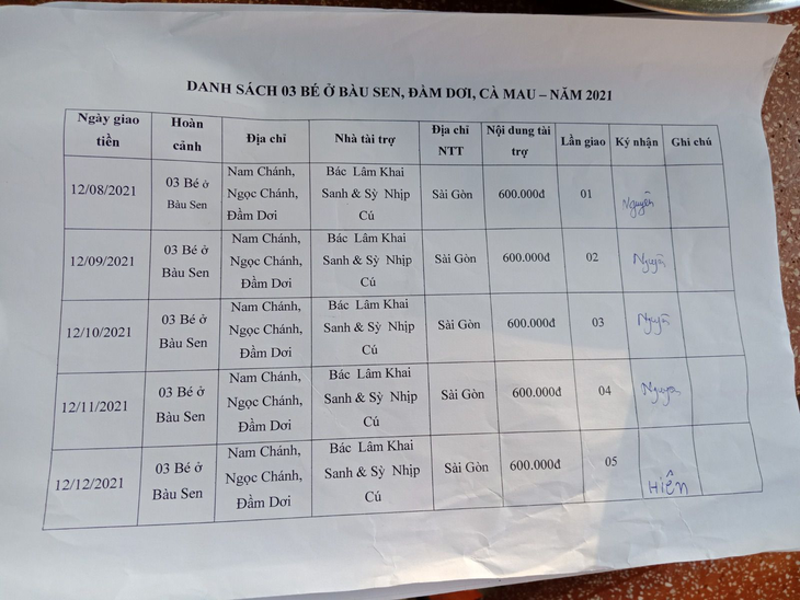 6. Sponsor: Mr. Lam Khai Sanh & Sy Nhip Cu: VND 600,000.