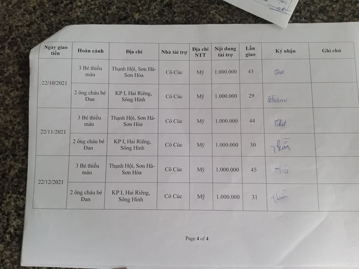 - 03 children with congenital anemia. Their father died in a traffic accident. Their mother works as a hired laborer to take care of them. They have to go for a blood change once a month.