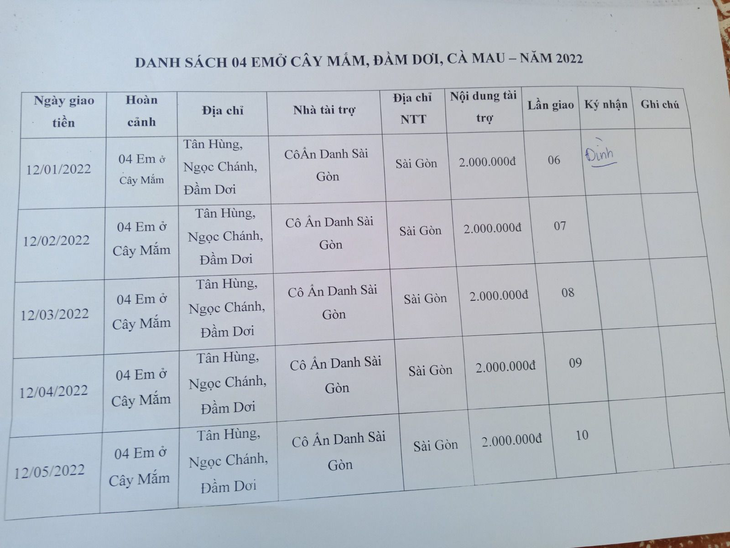 3. Case: Four students with difficult circumstances need help with money for their studies. Each child is VND 500,000.