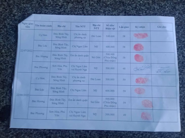 - Anonymous sister: VND 500,000 for Mrs. Hon.