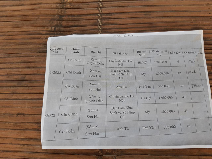 - Mr. Tu from Phu Yen: VND 500,000 for Mrs. Toan family.