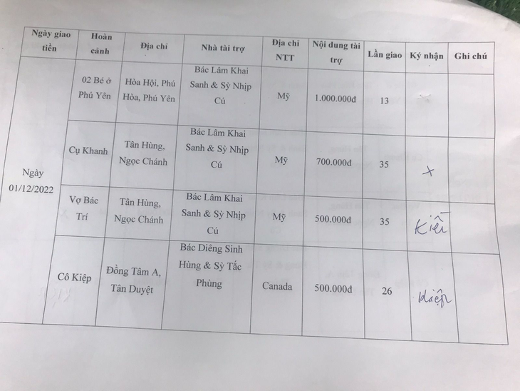- Mr. Dieng Sinh Hung & Mrs. Sy Tac Phung: VND 500,000 for Mrs. Kiep family.