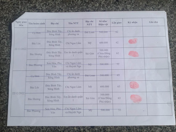 - Anonymous sister from Sai Gon: VND 500,000 for Mrs. Huong.
