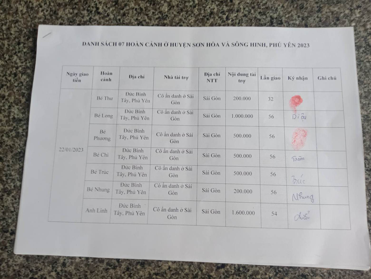 6. Sponsors: Anonymous Sponsor from Sai Gon: VND 5.5 million for 06 students, Mrs. Thom and Mr. Linh.