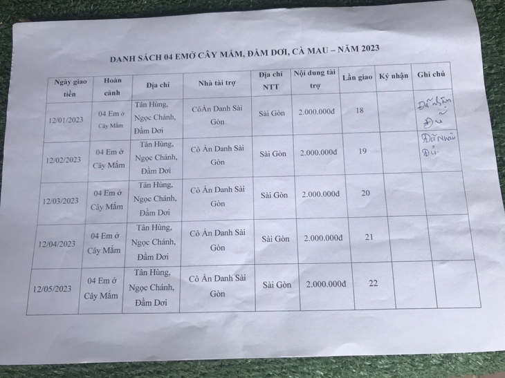 3. Case: Four students with difficult circumstances need help with money for their studies. Each child is VND 500,000.