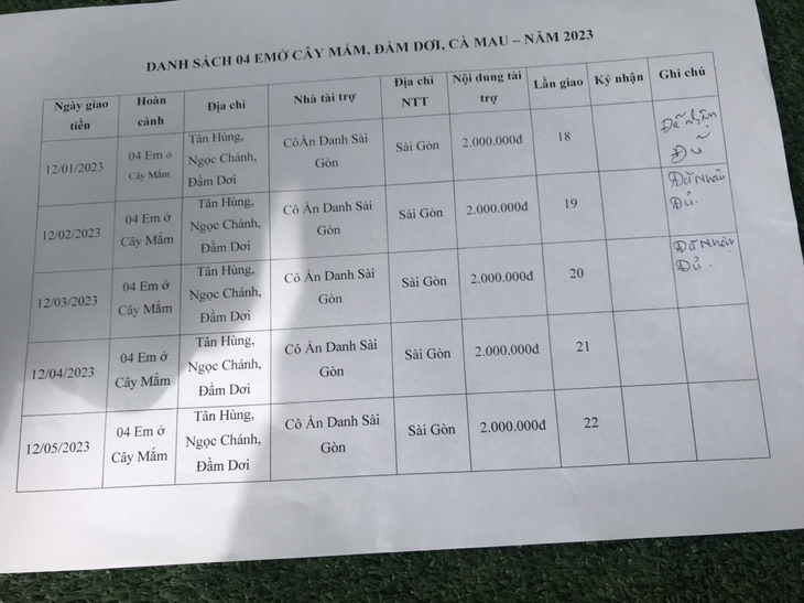 3. Case: Four students with difficult circumstances need help with money for their studies. Each child is VND 500,000.