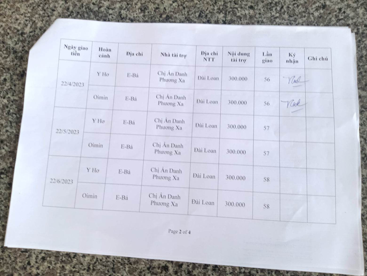 7. Total: VND 600,000 = Rice and basic necessities. Each case VND 300,000 = Rice and basic necessities. This month, Sponsor donates VND 200,000 more for each case.