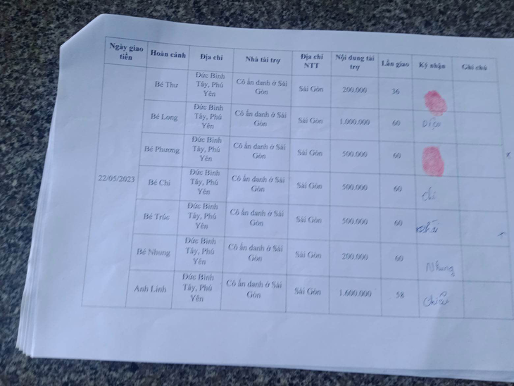 6. Sponsors: Anonymous Sponsor from Sai Gon: VND 5.5 million for 06 students, Mrs. Thom and Mr. Linh.