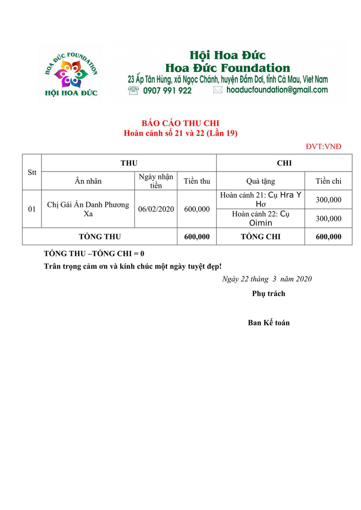 Báo cáo thu chi