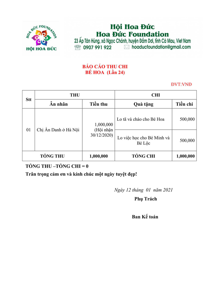 Báo cáo thu chi