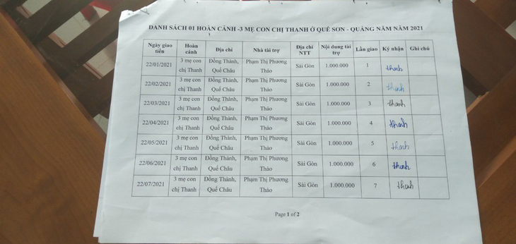 22-07-2021, Hội Hoa Đức đã giao số tiền lần 07 là 1.000.000 VNĐ của Cô Phạm Thị Phương Thảo tài trợ cho Gia đình Chị Thanh ở Đồng Thành, Quế Châu, Quế Sơn, Quảng Nam.