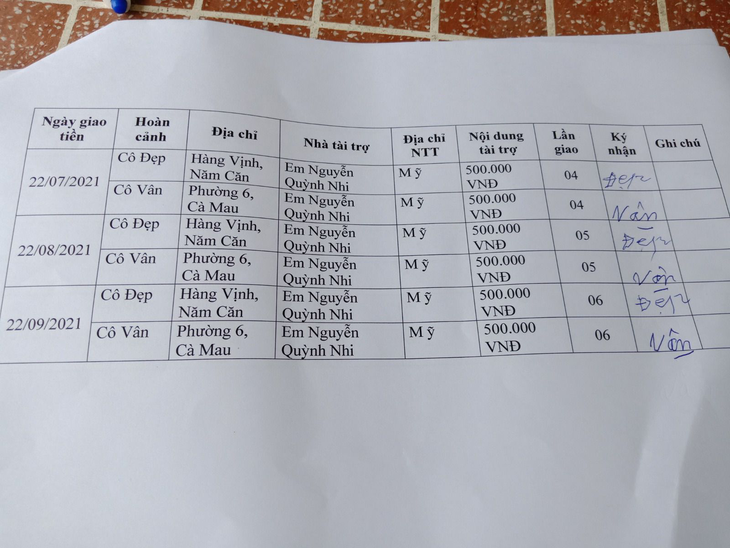 Sáng 22-09-2021, Hội Hoa Đức đã giao số tiền hàng tháng lần 06 cho 02 hoàn cảnh Cô Đẹp & Cô Vân do Em Nguyễn Quỳnh Nhi tài trợ: