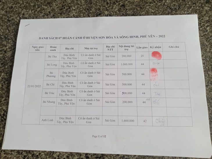 1. Bé Huỳnh Thanh Thư do Ân Nhân Ẩn Danh ở Sài Gòn tài trợ 200.000 VNĐ lần 20.