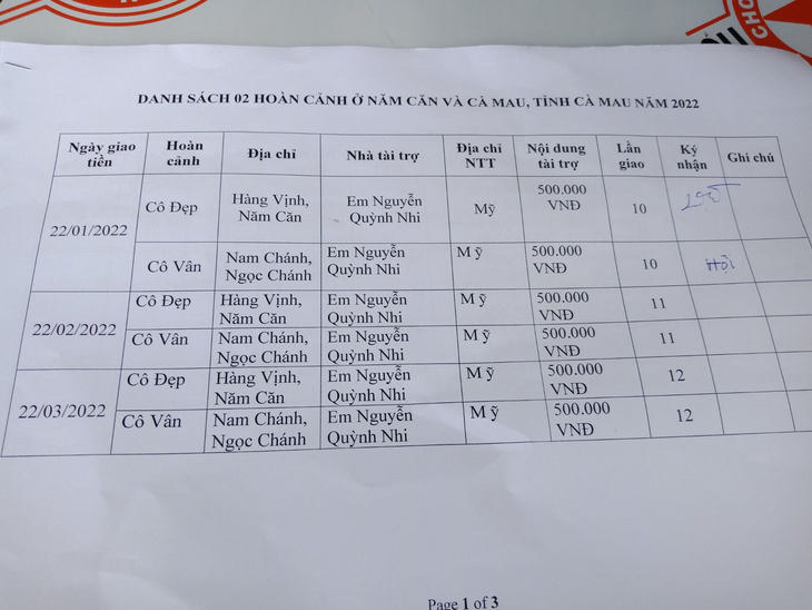 Sáng 22-01-2022, Hội Hoa Đức đã giao số tiền hàng tháng lần 10 cho 02 hoàn cảnh Cô Đẹp & Cô Vân do Em Nguyễn Quỳnh Nhi tài trợ: