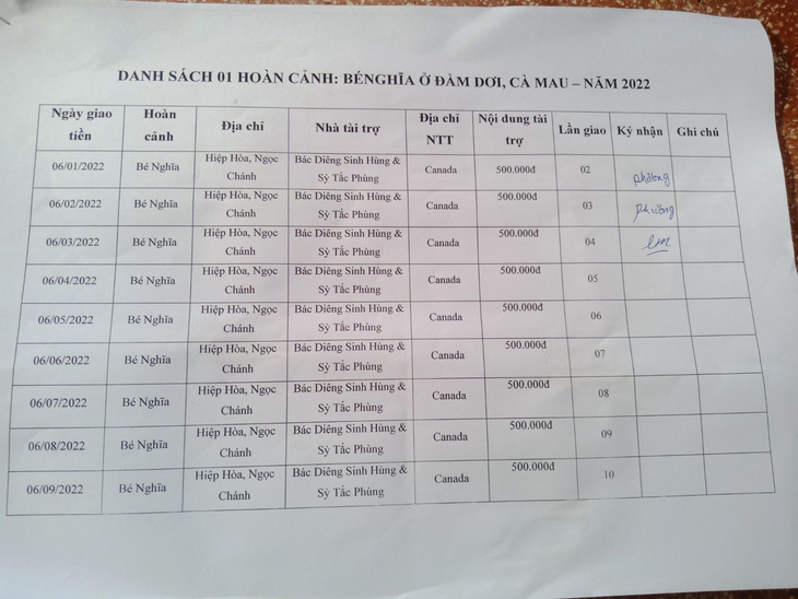 06-03-2022, Hội Hoa Đức đã giao số tiền 500.000VNĐ của Em Gái Ẩn Danh Phương Xa gửi tặng hàng tháng lần 04 cho Em Lê Hữu Nghĩa, 10 tuổi, học lớp 03, hoàn cảnh khó khăn, học giỏi, ở ấp Hiệp Hòa, xã Ngọc Chánh, huyện Đầm Dơi, tỉnh Cà Mau để lo việc học.
