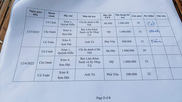 1. Chị Ẩn Danh ở Hà Nội: Tặng 1.000.000 VNĐ lần 38 cho Cô Trương Thị Cảnh bệnh ung thư vú và 03 người con đều bị bệnh Đao ở xóm 01, xã Quỳnh Diễn, huyện Quỳnh Lưu, tỉnh Nghệ An.