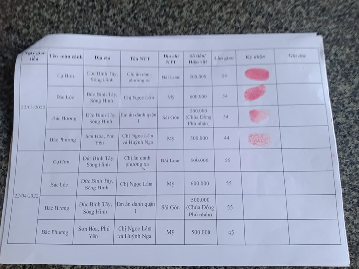 1. Lần 54 cho Cụ Nguyễn Thị Hơn: 500.000VNĐ của Chị Gái Ẩn Danh.