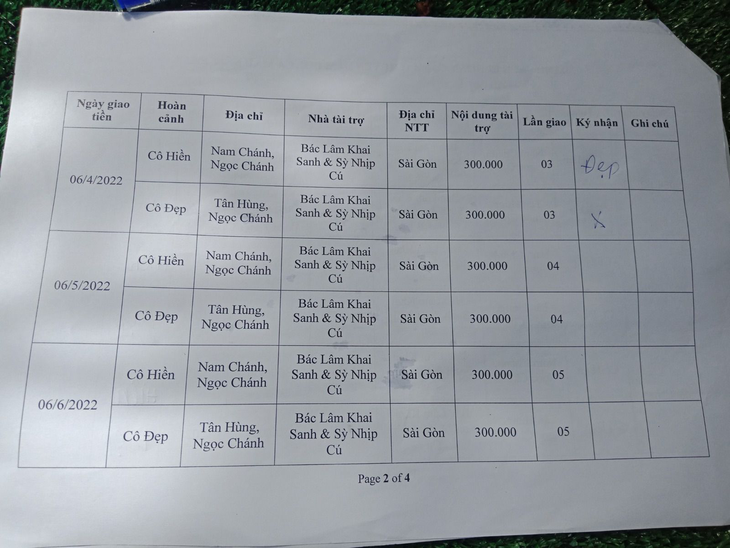 06-04-2022, Hội Hoa Đức đã giao số tiền 600.000VNĐ vcủa Bác Lâm Khai Sanh & Sỳ Nhịp Cú gửi tặng hàng tháng lần 02 cho hai hoàn cảnh Cô Hiền & Cô Đẹp ở xã Ngọc Chánh, huyện Đầm Dơi, tỉnh Cà Mau. Mỗi Cô 300.000 VNĐ hàng tháng.