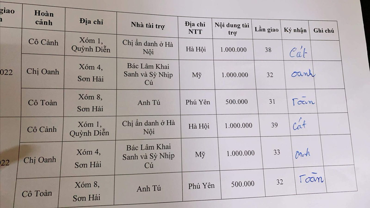 1. Chị Ẩn Danh ở Hà Nội: Tặng 1.000.000 VNĐ lần 39 cho Cô Trương Thị Cảnh bệnh ung thư vú và 03 người con đều bị bệnh Đao ở xóm 01, xã Quỳnh Diễn, huyện Quỳnh Lưu, tỉnh Nghệ An.