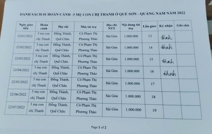 22-04-2022, Hội Hoa Đức đã giao số tiền lần 16 là 1.000.000 VNĐ của Cô Phạm Thị Phương Thảo tài trợ cho Gia đình Chị Thanh ở Đồng Thành, Quế Châu, Quế Sơn, Quảng Nam.