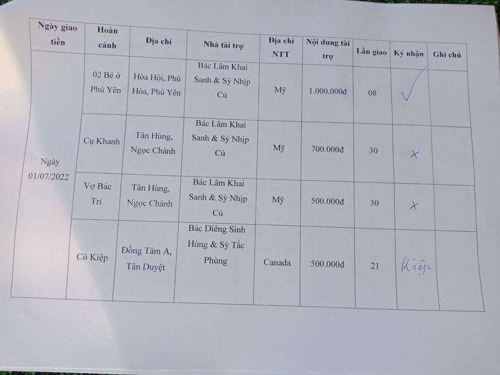 3. Hoàn cảnh 51: Gia đình Cô Nguyễn Bích Kiệp ở ấp Đồng Tâm A, xã Tân Duyệt, huyện Đầm Dơi, tỉnh Cà Mau được Bác Diêng Sinh Hùng và Sỳ Tắc Phùng tặng 500.000 VNĐ lần 21.