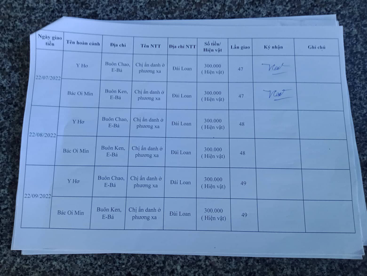 22-07-2022, Hội Hoa Đức, Chùa Đồng Phú và địa phương xã Ea-Bá đã giao hiện vật lần 47, trị giá 600.000 VNĐ của Chị Gái Ẩn Danh Phương Xa tặng cho hoàn cảnh 21 và 22. Mỗi hoàn cảnh nhận số hiện vật trị giá 300.000 VNĐ. Hiện vật được liệt kê rất chi tiết bằng hóa đơn có trong clip.