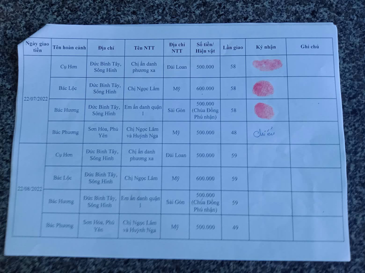 1. Lần 58 cho Cụ Nguyễn Thị Hơn: 500.000VNĐ của Chị Gái Ẩn Danh.