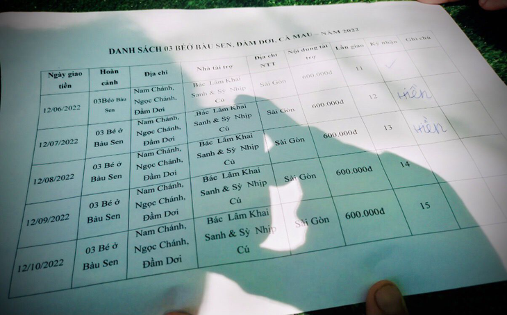 12-08-2022, Hội Hoa Đức đã giao số tiền 600.000VNĐ của Bác Lâm Khai Sanh & Sỳ Nhịp Cú gửi tặng hàng tháng lần 13 cho 03 Bé ở Bàu Sen, Nam Chánh, Ngọc Chánh, Đầm Dơi, Cà Mau. Hoàn cảnh Gia đình khó khăn, cần giúp tiền sữa và tiền học hàng tháng.