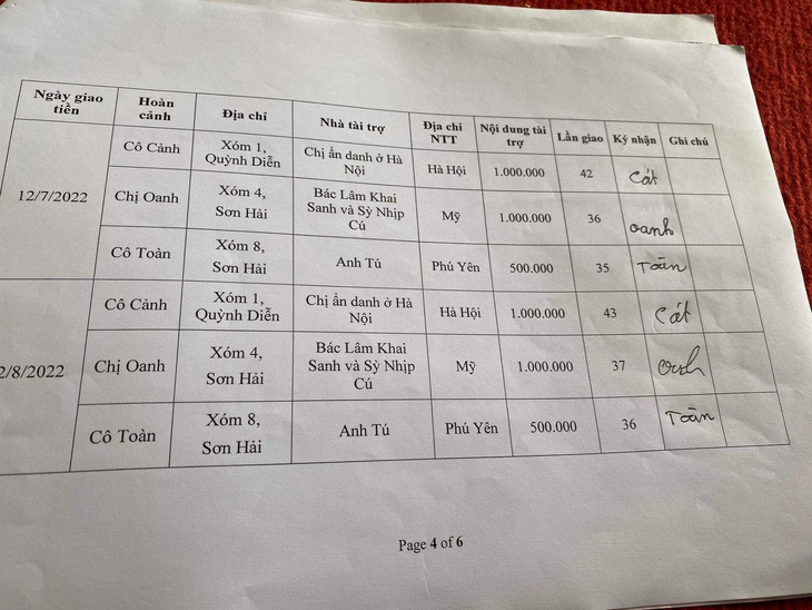 1. Chị Ẩn Danh ở Hà Nội: Tặng 1.000.000 VNĐ lần 43 cho Cô Trương Thị Cảnh bệnh ung thư vú và 03 người con đều bị bệnh Đao ở xóm 01, xã Quỳnh Diễn, huyện Quỳnh Lưu, tỉnh Nghệ An.