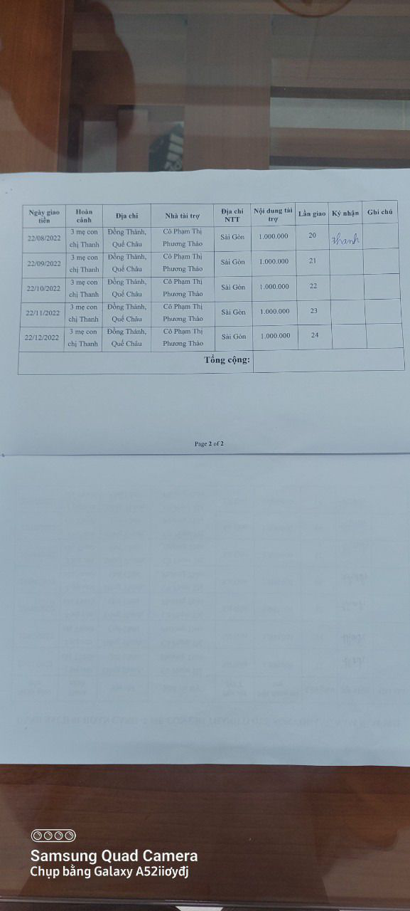 22-08-2022, Hội Hoa Đức đã giao số tiền lần 20 là 1.000.000 VNĐ của Cô Phạm Thị Phương Thảo tài trợ cho Gia đình Chị Thanh ở Đồng Thành, Quế Châu, Quế Sơn, Quảng Nam.