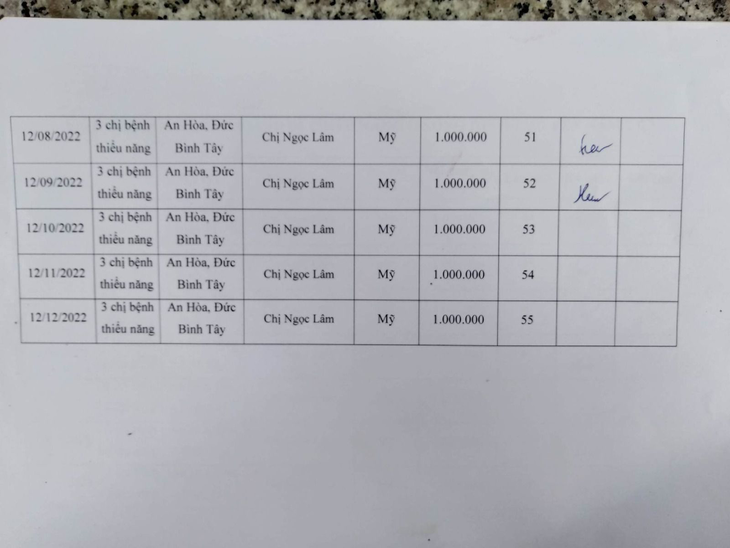 12-09-2022, Hội Hoa Đức và Chùa Đồng Phú đã giao số tiền lần 52 là 1.000.000VNĐ của Chị Ngọc Lâm gửi tặng hàng tháng cho Gia đình Bác Nguyễn Thị Tuyết Hoa có 03 con bệnh khờ ở thôn An Hòa, xã Đức Bình Tây, huyện Sông Hinh, tỉnh Phú Yên để mua gạo & thuốc.