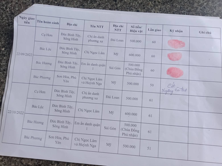 2. Lần 60 cho Bác Bùi Thị Lộc: 600.000VNĐ của Chị Ngọc Lâm.