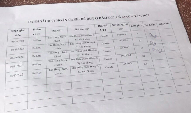 06-10-2022, Hội Hoa Đức đã giao số tiền 500.000VNĐ của Em Gái Ẩn Danh Phương Xa gửi tặng hàng tháng lần 03 cho Em Duy, 12 tuổi, học lớp 05, hoàn cảnh nghèo, ở ấp Tân Hùng, xã Ngọc Chánh, huyện Đầm Dơi, tỉnh Cà Mau để lo việc học.