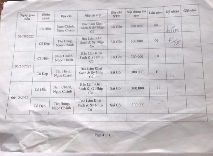 06-10-2022, Hội Hoa Đức đã giao số tiền 600.000VNĐ vcủa Bác Lâm Khai Sanh & Sỳ Nhịp Cú gửi tặng hàng tháng lần 09 cho hai hoàn cảnh Cô Hiền & Cô Đẹp ở xã Ngọc Chánh, huyện Đầm Dơi, tỉnh Cà Mau. Mỗi Cô 300.000 VNĐ hàng tháng.