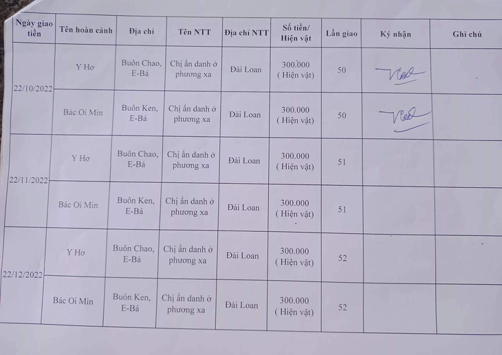 22-10-2022, Hội Hoa Đức, Chùa Đồng Phú và địa phương xã Ea-Bá đã giao hiện vật lần 50, trị giá 600.000 VNĐ của Chị Gái Ẩn Danh Phương Xa tặng cho hoàn cảnh 21 và 22. Mỗi hoàn cảnh nhận số hiện vật trị giá 300.000 VNĐ. Hiện vật được liệt kê rất chi tiết bằng hóa đơn có trong clip.