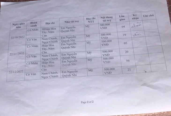 Sáng 22-10-2022, Hội Hoa Đức đã giao số tiền hàng tháng lần 19 cho Cô Vân và lần 04 cho Cô Nhãn do Em Nguyễn Quỳnh Nhi tài trợ: