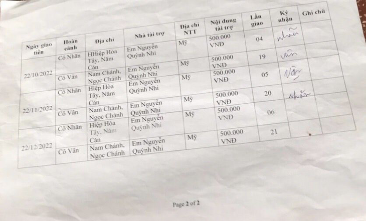 Sáng 22-11-2022, Hội Hoa Đức đã giao số tiền hàng tháng lần 20 cho Cô Vân và lần 05 cho Cô Nhãn do Em Nguyễn Quỳnh Nhi tài trợ: