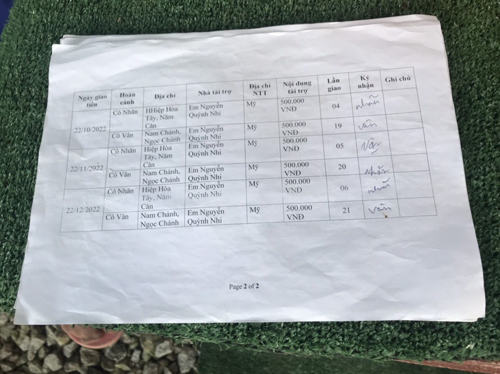 Sáng 22-12-2022, Hội Hoa Đức đã giao số tiền hàng tháng lần 21 cho Cô Vân và lần 06 cho Cô Nhãn do Em Nguyễn Quỳnh Nhi tài trợ: